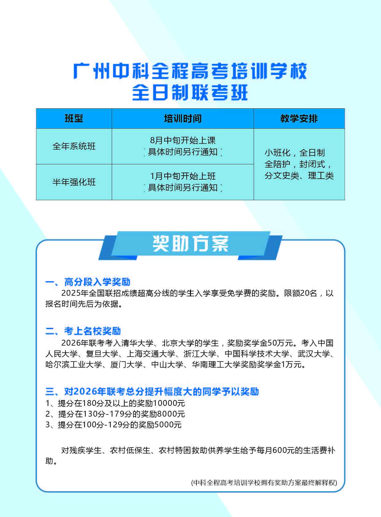 广州中科全程高考培训学校,专业从事高考复读、艺体生文化课冲刺、港澳台联考、以及春季高考班