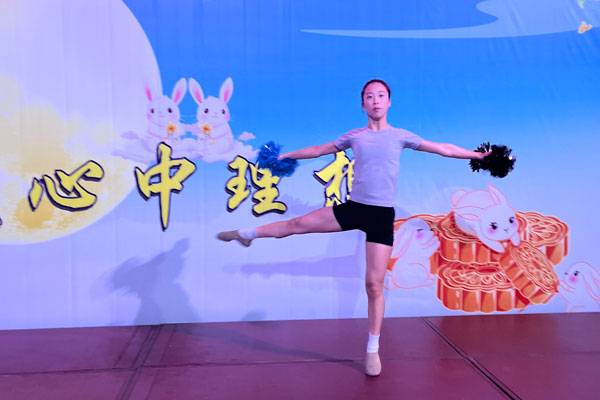 2502班赵*同学带来活力四射的啦啦操,青春的节拍与天上的明月遥相呼应,让现场氛围持续升温。