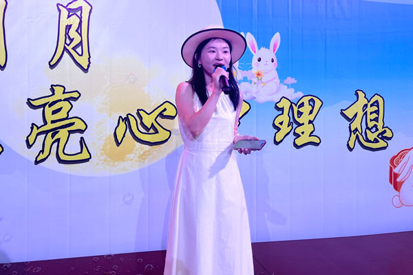 教师代表张悦老师带来了歌曲演唱,为大家送上了一份惊喜满满的中秋礼物。
